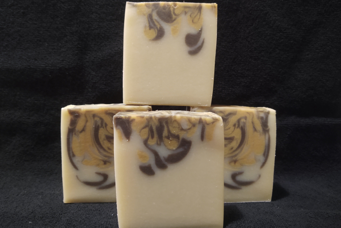 Made with olive oil, coconut oil, palm oil, avocado oil, castor oil, cocoa butter, lye, fragrance and color.